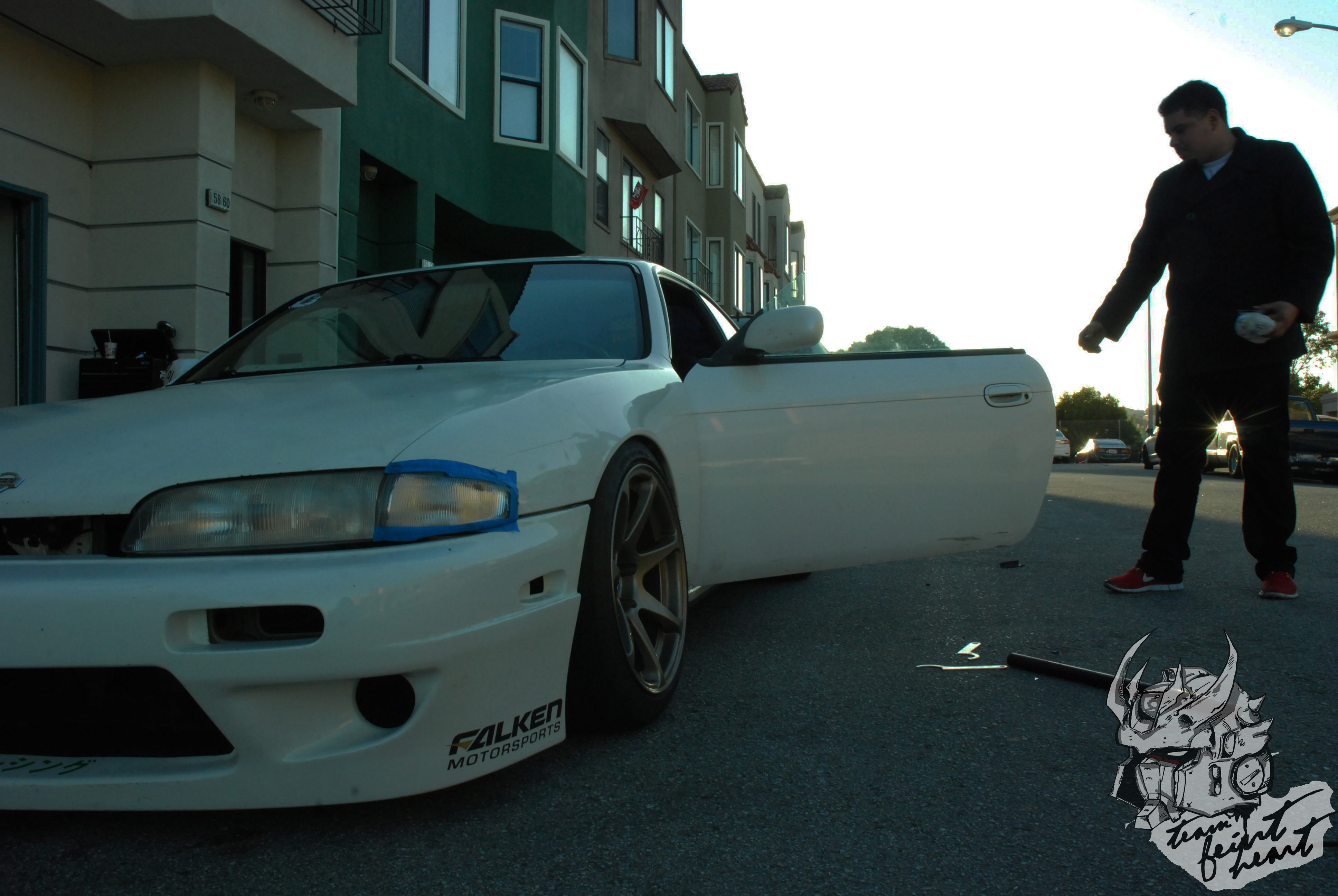 You know all the videos you guys watched? Well Thomas, man in red, is usually the director of those films (other than 2). This here is his White s14 with common but effective MB Battles. Long story short taking a trip to Fatlace to see if they make our stickers, he called screaming that pretty much was going to buy alot more than stickers.