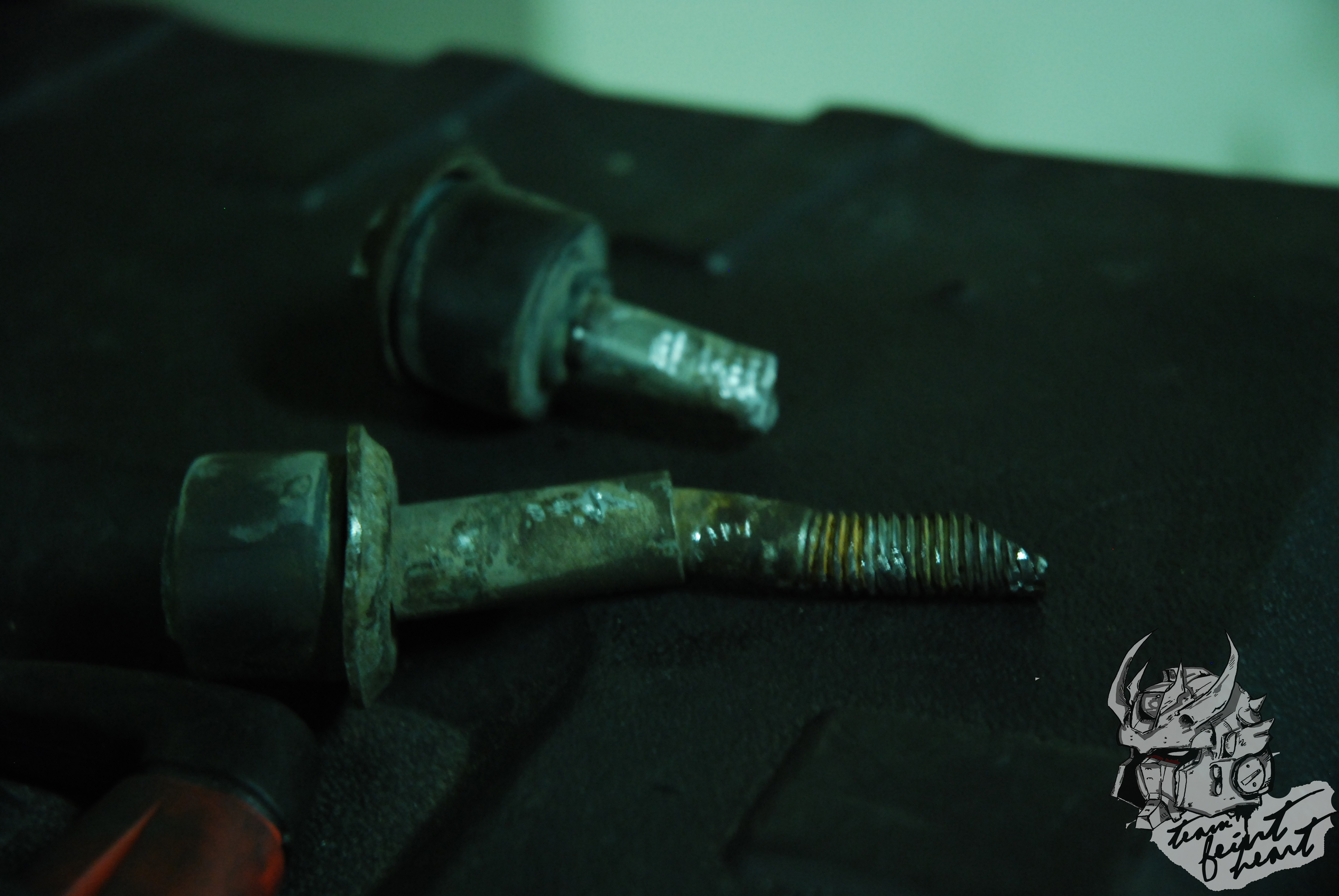 Thanks to one of the many previous owners millions of years ago either bottomed out or completely installed my sway bar bolt wrong was bent into a L-shape. I tried to bend it back instead though resulted to just grabbing my katana blade and going mortal kombat on that ass with a spine severing bolt splitting slash.